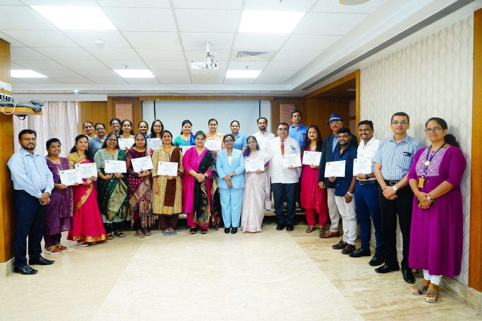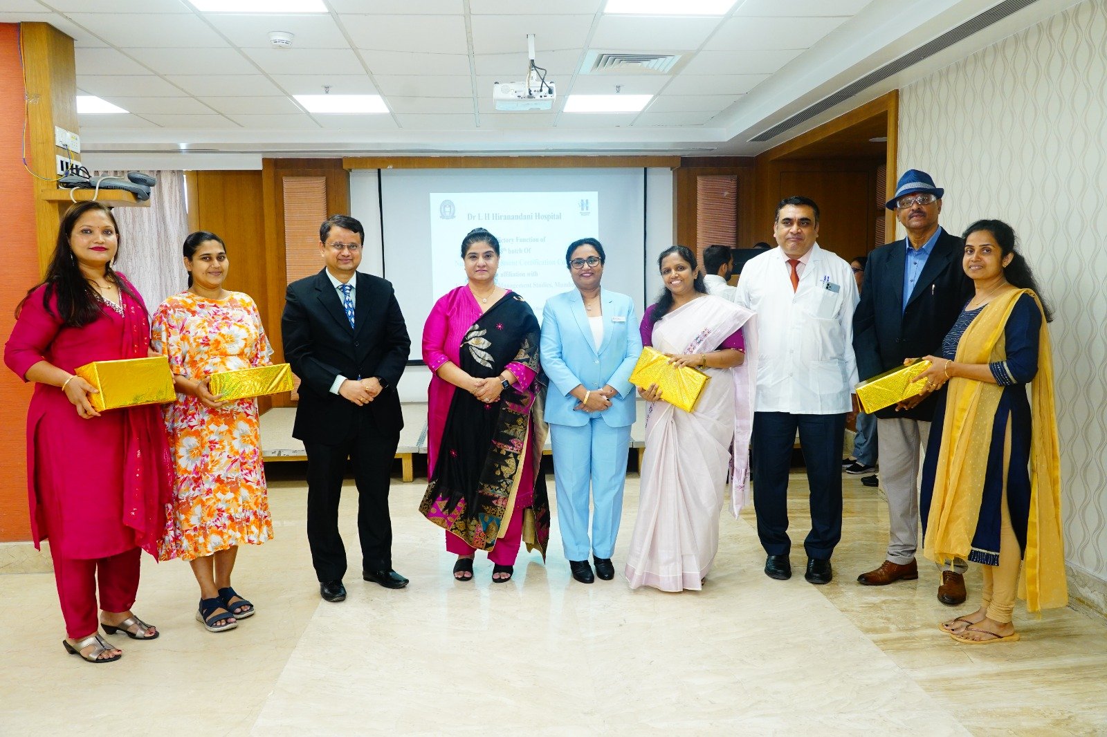 Good Nursing is synonymous with good healthcare delivery. The role of Nursing leadership has also changed dramatically. Nurse Managers are required to contribute to the overall decision making. They are the backbone of healthcare system. Keeping that in mind, Nursing department of Dr L H Hiranandani Hospital has successfully completed the Valedictory function of 8th batch of Nursing Management course in affiliation with KC College of Management studies. 15 nurse leaders from various hospital enrolled for this course. Program was graced by Vice Chancellor and Honourable director , Professor Hemalata Bagla from KC College Management Studies . The event started with a welcome address by Director Nursing, Ms Saly Suseel, Followed by report reading of the course-by-Course co-ordinator, MD. Najemoddin Quazi. Apart from that Dr. Sameer Kulkarni, CEO Dr L H Hiranandani Hospital and Medical Director Dr. Manish Gupta has given a motivational speech to the Nurses.