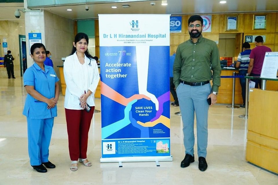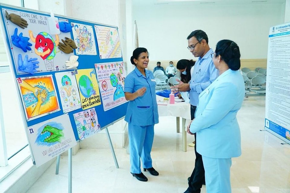 Dr L H Hiranandani Hospital celebrated the World Hand Hygiene Day on the 5th May 2023 with lots of enthusiasm and participation. The staff created posters on the theme of hand hygiene which were kept for public display and judged by a team of senior jury. The top three posters were selected and their creators awarded.